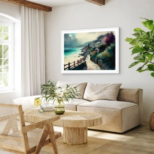 Plakát v bílém rámu - Středomořské městečko - 40x40 cm
