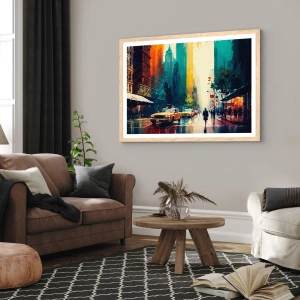 Plakát v rámu světlý dub - New York – tady je i déšť barevný - 60x60 cm