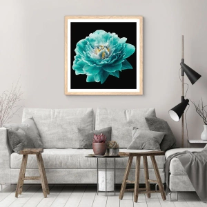 Plakát v rámu světlý dub - Modré a zlaté okvětní lístky - 50x40 cm
