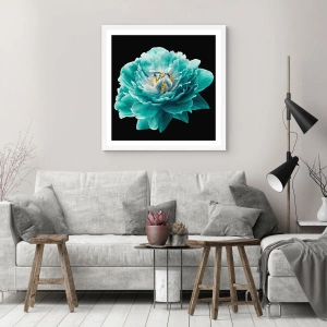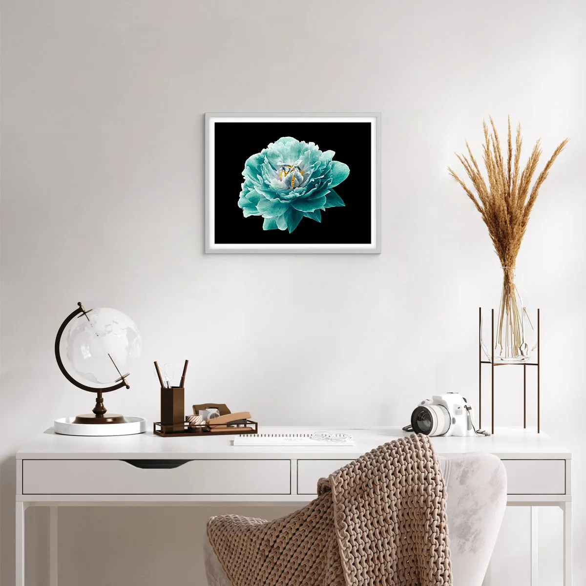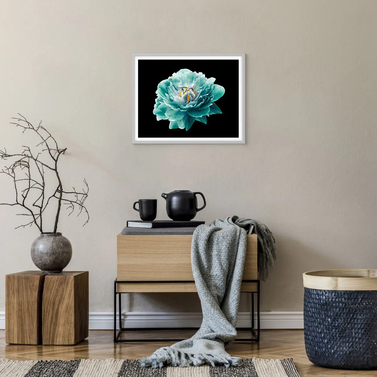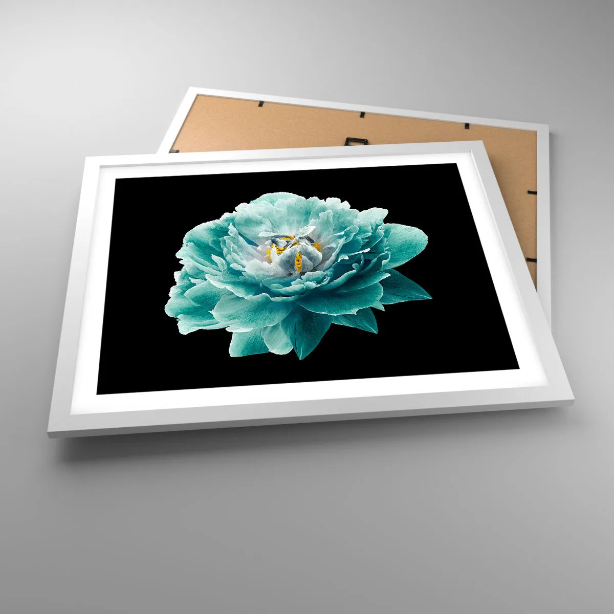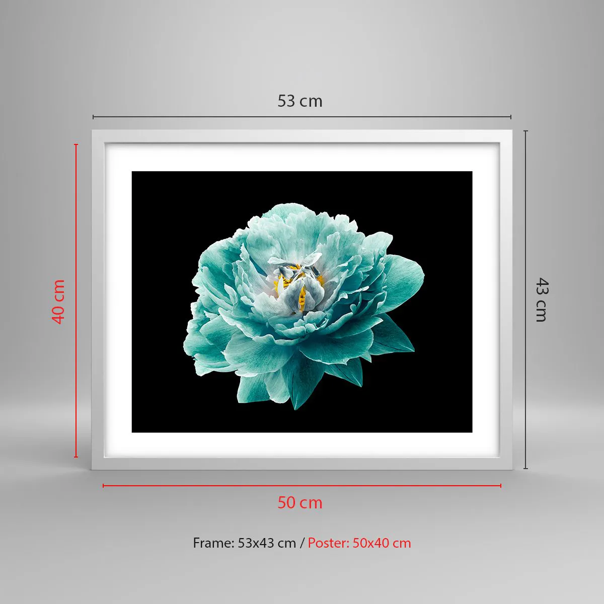 Plakát v bílém rámu - Modré a zlaté okvětní lístky - 50x40 cm