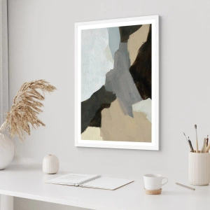 Plakát v bílém rámu - Abstrakce: křižovatka šedi - 61x91 cm