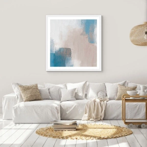Plakát v bílém rámu - Růžová abstrakce za modrým závojem - 50x40 cm