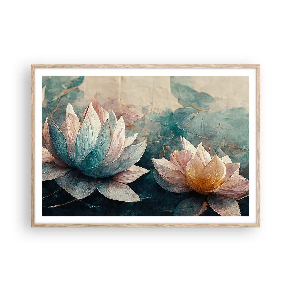 Plakát v rámu světlý dub - Hvězdy a jezero - 100x70 cm