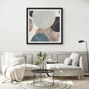 - Tento plakát představuje geometrickou kompozici kruhů v odstínech modré a šedé se zlatými akcenty. Moderní dekorace, která vnese harmonii a eleganci do každého interiéru.