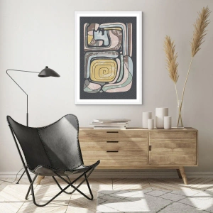Plakát v bílém rámu - Abstrakce v předkolumbovském duchu - 40x30 cm