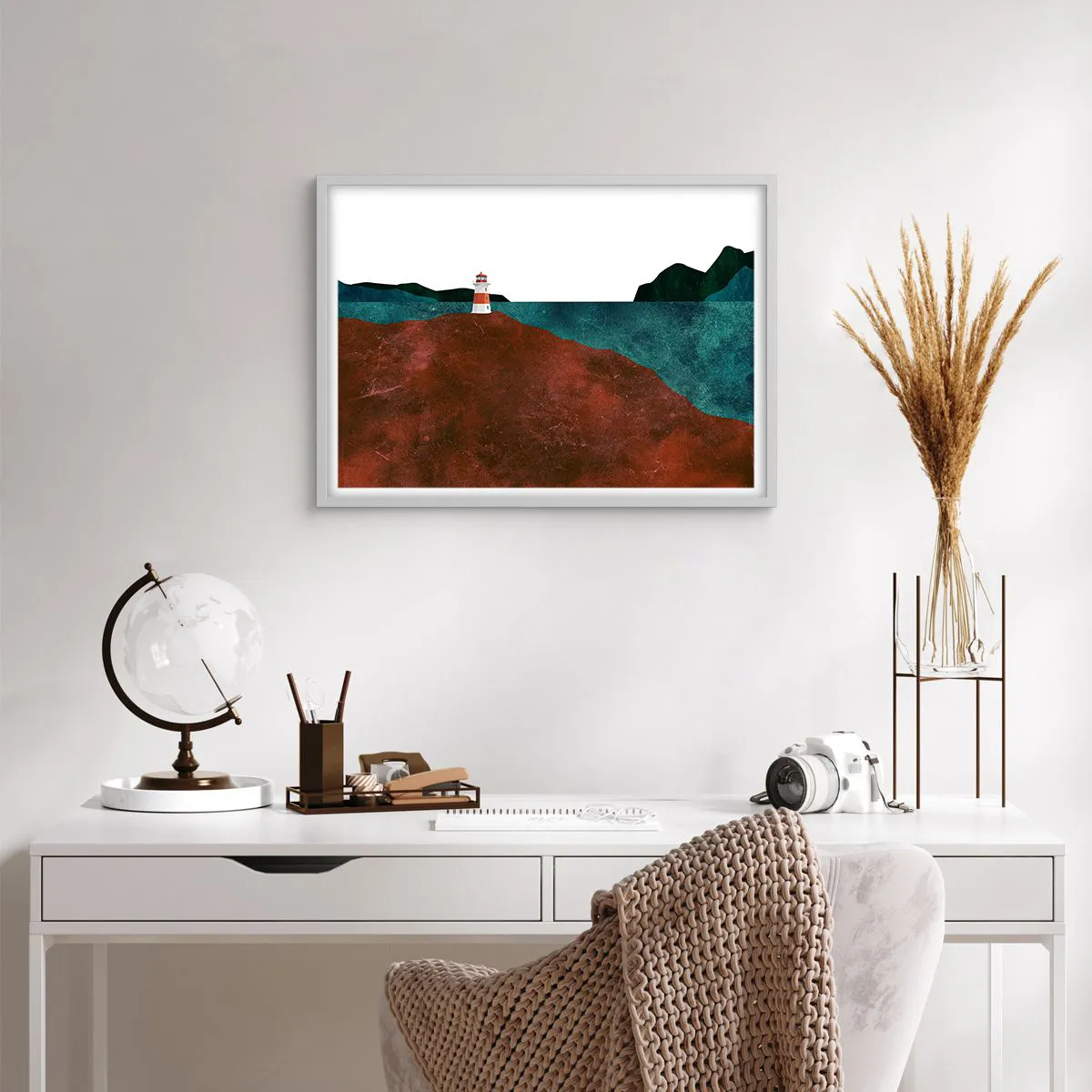 Plakát v bílém rámu - Hledící na moře - 70x50 cm