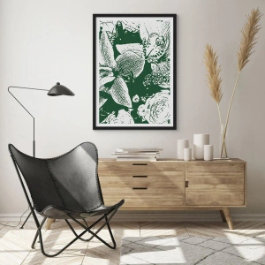 Plakát v černém rámu - Botanická ilustrace květů a listů v kontrastních barvách - 50x70cm - Kytice – svět zeleně - Moderní nástěnná dekorace do obývacího pokoje a ložnice ARTTOR