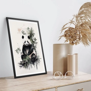 Plakát v černém rámu - Akvarelová panda obklopená bambusovými listy - 50x70cm - Pozdravy z Číny - Moderní nástěnná dekorace do obývacího pokoje a ložnice ARTTOR