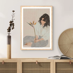 Plakát v rámu světlý dub - Portrét s exotickou květinou - 30x40 cm