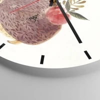Nástěnné hodiny „Už mě máš rád/a“ jsou okouzlující dekorací pro nejmenší a milovníky ilustrací inspirovaných přírodou. Na ciferníku je roztomilý ježek nesoucí na zádech jablko a barevné větvičky s listy a plody. Kompozice potěší svými detaily a uměleckým přístupem k zobrazení zvířete. Celé dílo je vyzdobeno jemnými, přírodními barvami, které dokonale ladí se světlým pozadím hodin.