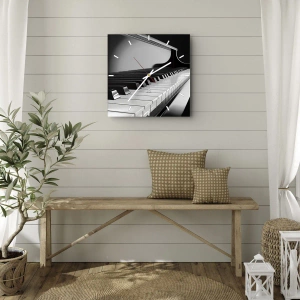 Hodiny jsou vyrobeny z bezpečného tvrzeného skla o tloušťce 4mm. Technologie výroby hodin je v souladu s třídou bezpečnosti 2B2 podle normy PN-EN 12600:2004, která garantuje odolnost proti nárazům. Hodiny na skle jsou připravené k zavěšení – mají kovový závěs upevněný na zadní částí hodin a pěnovou distanční podložku, která upravuje vzdálenost hodin od zdi. Hodiny mají tichý plovoucí mechanismus napájený 1,5V baterií - AA baterie (baterie není součástí balení).