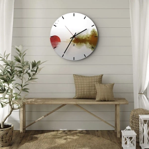 - Tyto hodiny s minimalistickou krajinou zobrazující rudé slunce a jeho odraz na jezeře jsou uklidňující a esteticky příjemnou dekorací. Ideální do interiérů inspirovaných přírodou, Japonskem a harmonií.