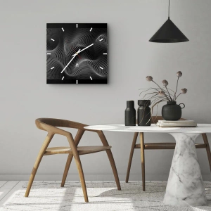 Nástěnné hodiny - Hypnotizující bílé čáry na černém pozadí vytvářející optickou vlnu. - 30x30cm - Tanec světla v prostoru - Moderní nástěnná dekorace do obývacího pokoje, kuchyně a ložnice ARTTOR