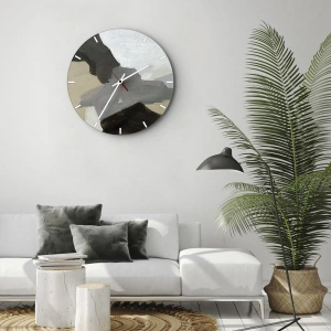 - Tyto nástěnné hodiny se vyznačují abstraktním obrazem v odstínech šedé, černé a béžové. Jejich moderní design a uklidňující barvy dokonale doplňují minimalistický a industriální interiér.