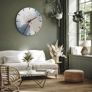 - Tyto nástěnné hodiny se vyznačují moderním abstraktním designem v odstínech béžové, modré a šedé. Tlumená barevná paleta a texturované tahy štětcem jim dodávají eleganci a jemnost.