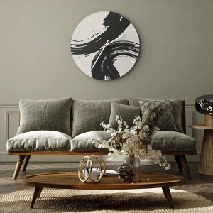 - Tyto kulaté nástěnné hodiny o rozměrech 30x30 cm se vyznačují dynamickými tahy připomínajícími černý inkoust na světlém pozadí. Ideální do moderního minimalistického interiéru.