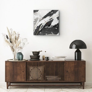Nástěnné hodiny - Dynamické tahy štětcem v černé, bílé a šedé barvě - 30x30cm - Velkorysá abstrakce - Moderní nástěnná dekorace do obývacího pokoje, kuchyně a ložnice ARTTOR