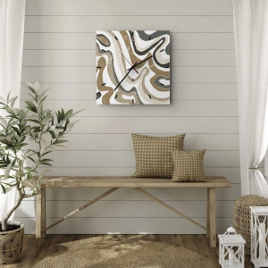 Nástěnné hodiny - Klikaté pruhy v zemitých tónech na bílém pozadí - 30x30cm - Meandry zemitých barev - Moderní nástěnná dekorace do obývacího pokoje, kuchyně a ložnice ARTTOR