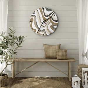 Nástěnné hodiny - Earthy Meanders - Klikaté pruhy v zemitých barvách na bílém pozadí