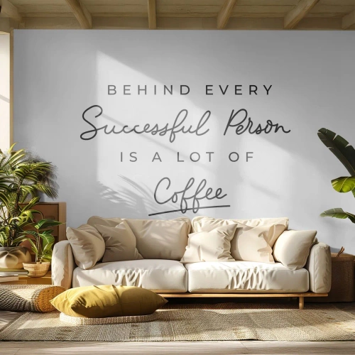 Fototapeta Standard Eco - Motivační citát o úspěchu a kávě na bílém pozadí - 100x70cm - Tajemství úspěchu - Moderní nástěnná dekorace do obývacího pokoje a ložnice ARTTOR