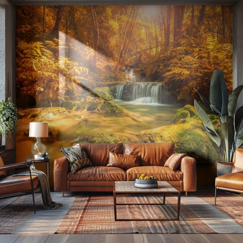 Fototapeta Premium Canvas - Lesní vodopád ve zlaté - Krajina, Vodopád, Thajsko - 450x315 cm