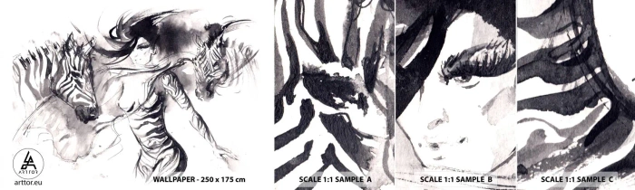 Fototapeta Vzorek Standard Eco - Tančící se zebrami - Abstrakce, Žena, Žebra - 100x30 cm