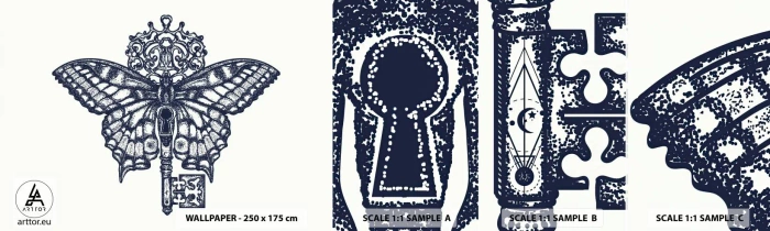 Fototapeta Vzorek Standard Eco - Všechna tajemství srdce - Abstrakce, Motýl, Klíč - 100x30 cm