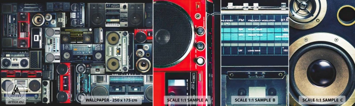 Fototapeta Vzorek Standard Eco - Stesk po 80. letech - Magnetofon, Hudební zesilovač, Vintage hudební vybavení - 100x30 cm