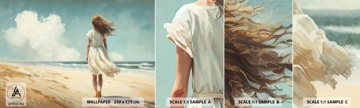 Fototapeta Vzorek Standard Eco - Směrem k slunci a větru - Dívka, Pláž, Procházka - 100x30 cm