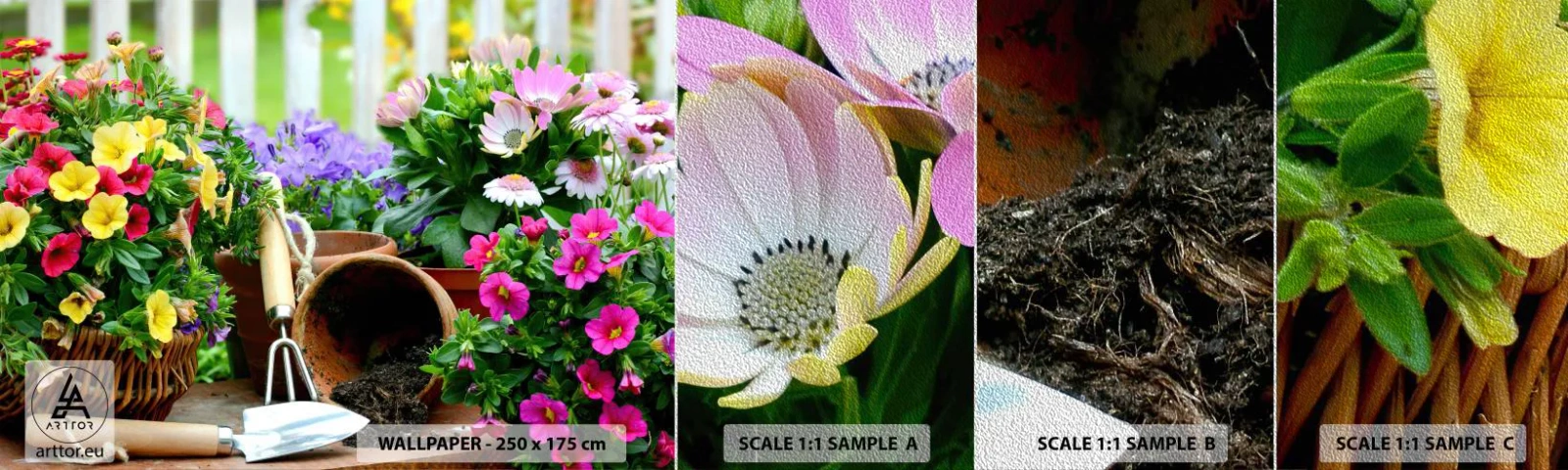 Vzor Fototapety Premium Sand - Zahrádka Žofky - Květiny, Zahrada, Kytice květin - 100x30 cm