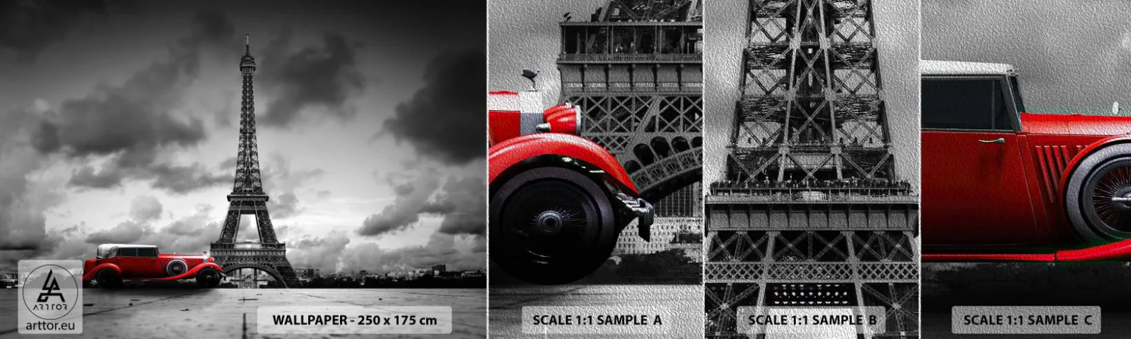 Vzor Fototapety Premium Sand - Ne tak dávno v Paříži - Automobilový průmysl, Eiffelova věž, Paříž - 100x30 cm
