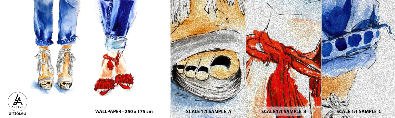 Vzor Fototapety Premium Sand - Možná bychom šli na procházku? - Žena, Móda, Obuv - 100x30 cm