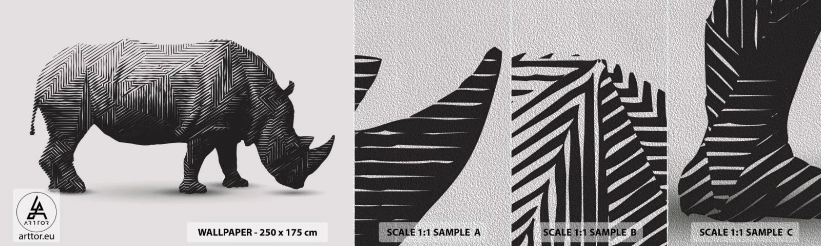 Vzor Fototapety Premium Sand - Geometrická krása přírody - Zvířata, Nosorožec, Grafika - 100x30 cm