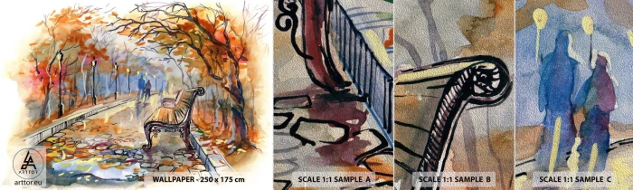 Vzor Fototapety Premium Sand - Společně putovat podzimem - Krajina, Park, Podzim - 100x30 cm