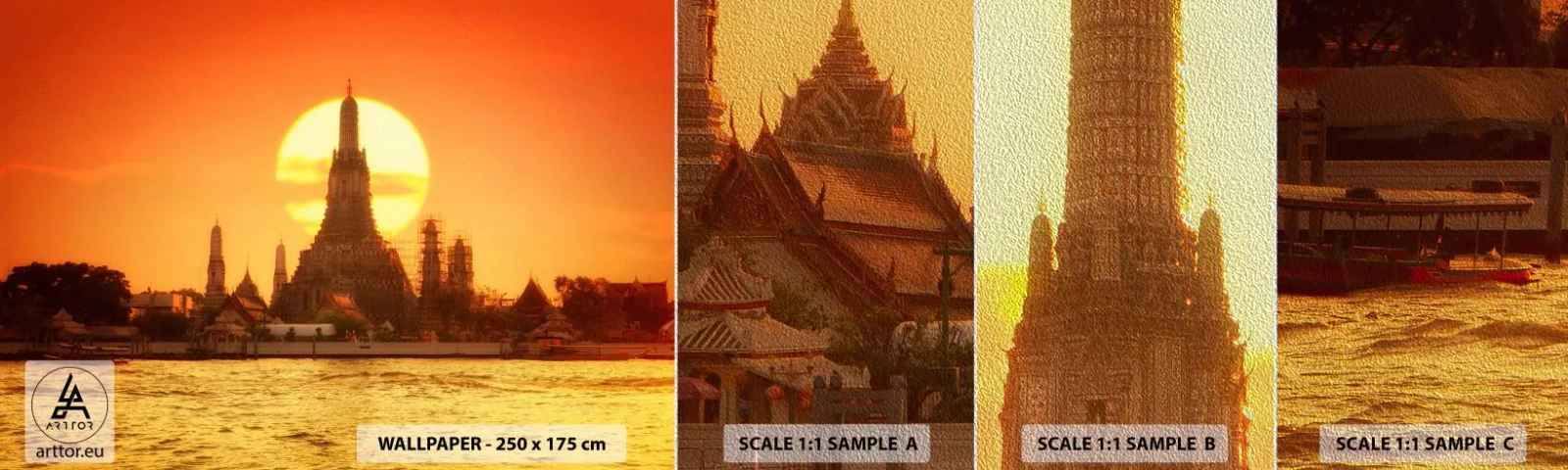 Vzor Fototapety Premium Sand - Ke slunci, vždy ke slunci - Bangkok, Chrám úsvitu, Thajsko - 100x30 cm