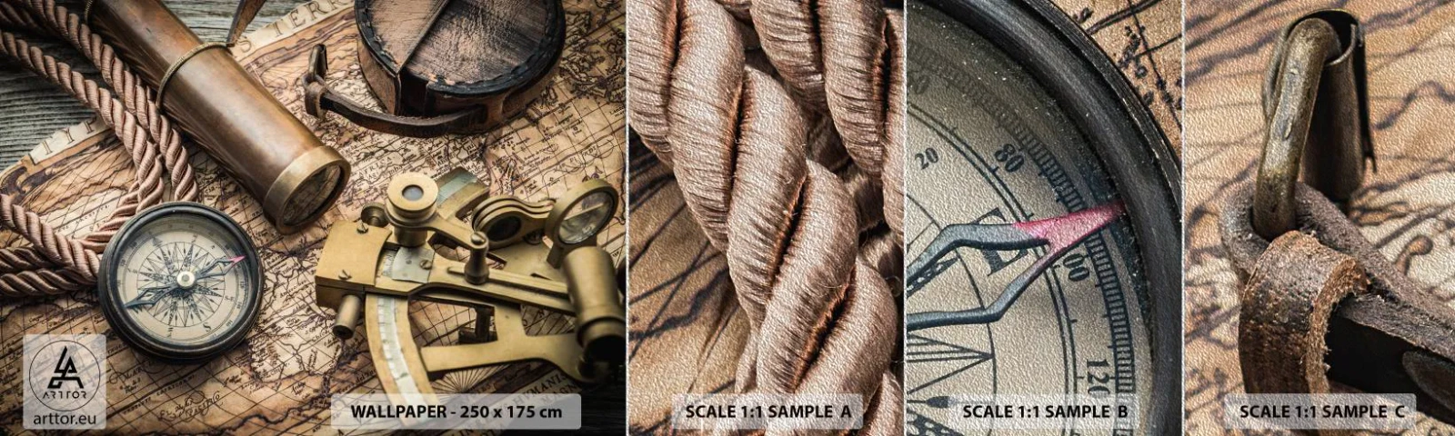 Vzor Fototapety Premium Sand - Urči směr - Námořní, Mapa světa, Kompas - 100x30 cm