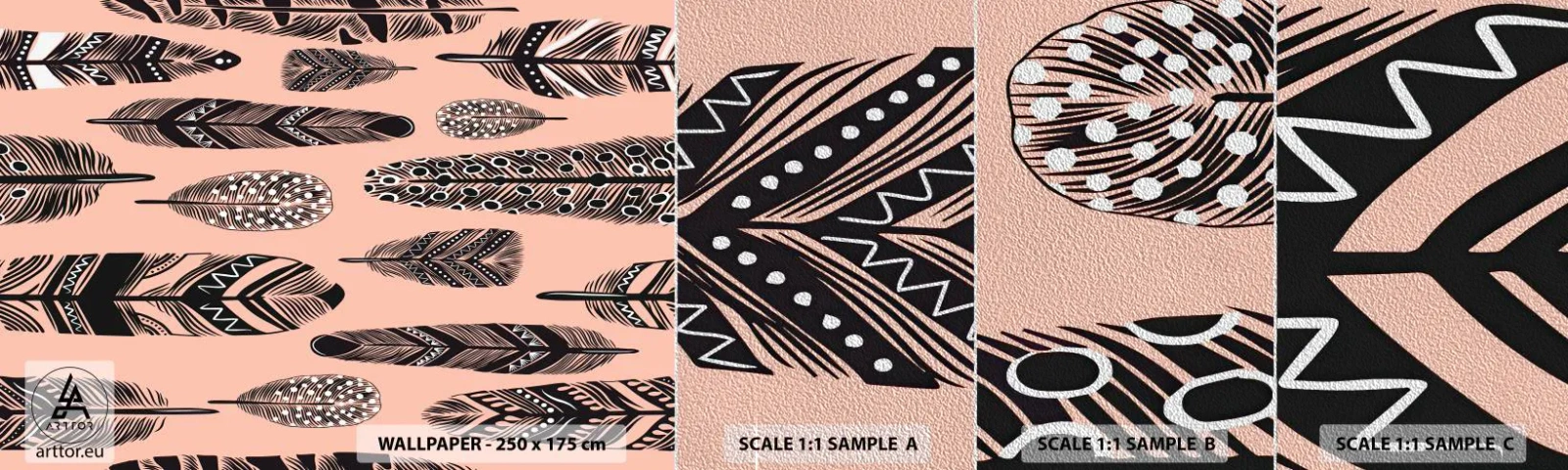 Vzor Fototapety Premium Sand - Indiánská kolekce - Abstrakce, Peří, Boho - 100x30 cm