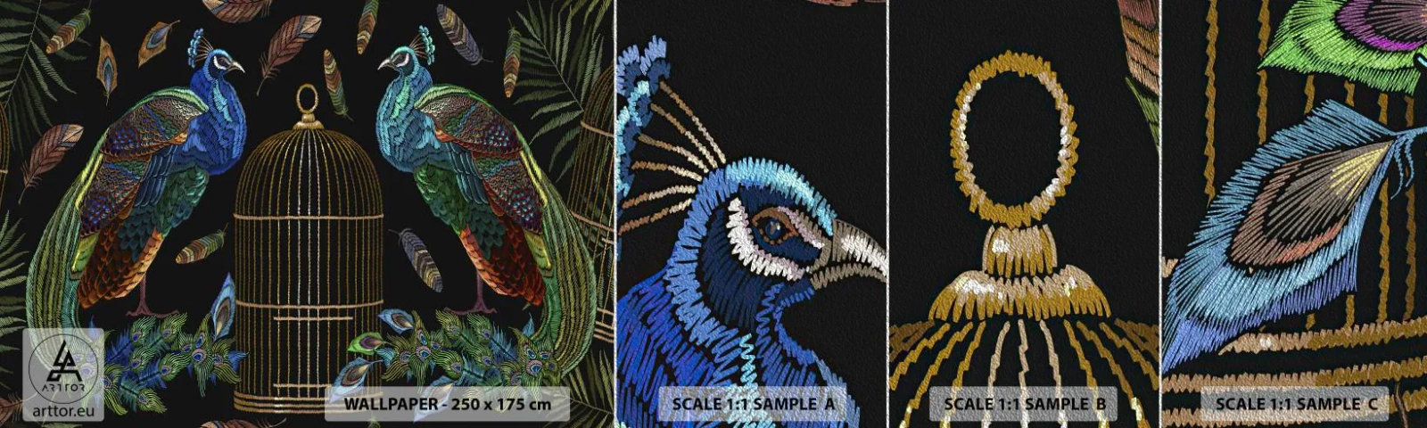 Vzor Fototapety Premium Sand - V královském rouchu - Abstrakce, Páv, Paví peří - 100x30 cm