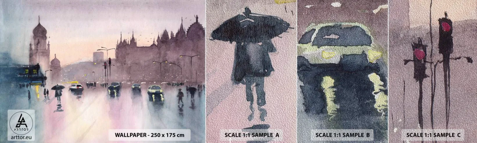 Vzor Fototapety Premium Sand - V deštivém oparu - Město, Architektura, Památky - 100x30 cm