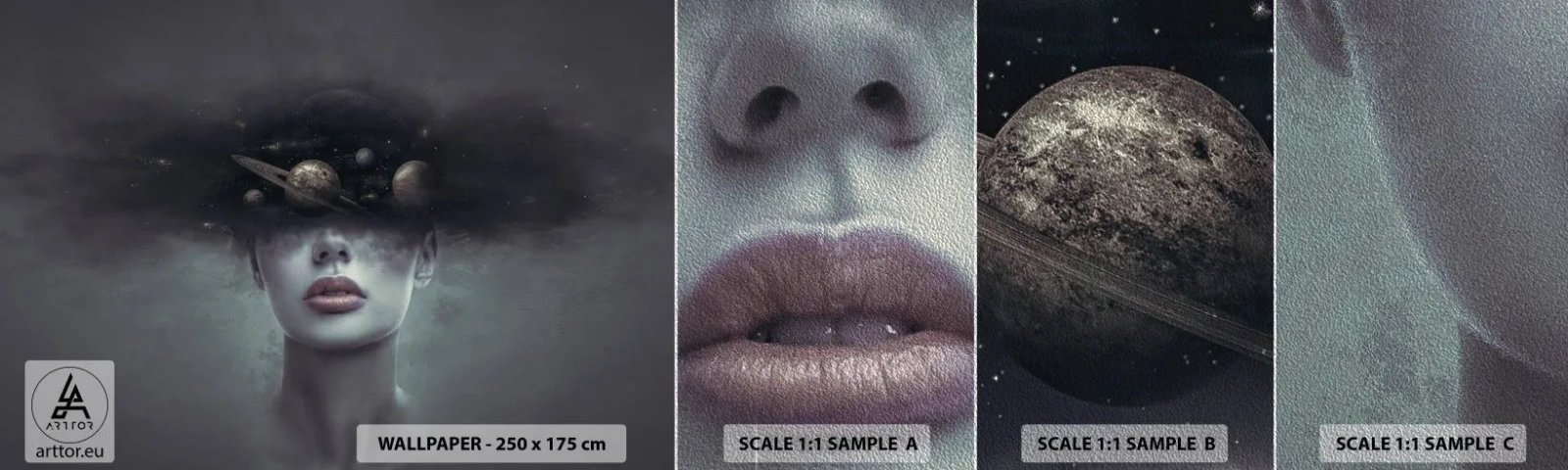 Vzor Fototapety Premium Sand - A planety… - Abstrakce, ženská tvář, Kosmos - 100x30 cm