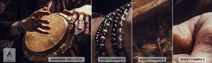 Vzor Fototapety Premium Sand - V rytmu srdce - Hra na bicí, Afrika, Hudba - 100x30 cm