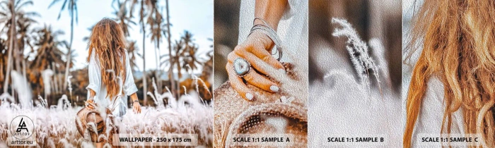 Vzor Fototapety Premium Sand - Zrozená z travní chmýří - Žena, Vinobraní, Boho - 100x30 cm