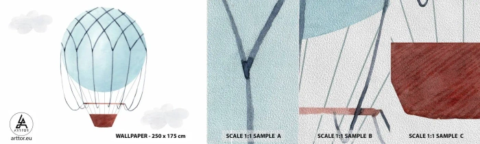 Vzor Fototapety Premium Sand - Celý v oblacích - Dětské, Balón, Minimalismus - 100x30 cm
