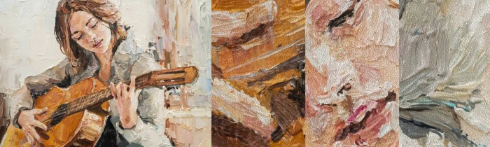 Vzor Fototapety Premium Sand - Koncert pro kytaru a dívčí srdce - Kytara, Hudba, Dívka - 100x30 cm