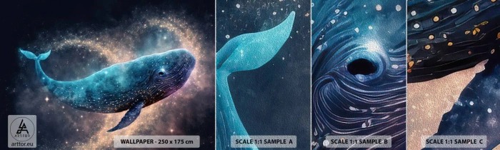 Vzor Fototapety Premium Sand - Je takový svět… - Velryba, Kouzlo, Fantastický - 100x30 cm