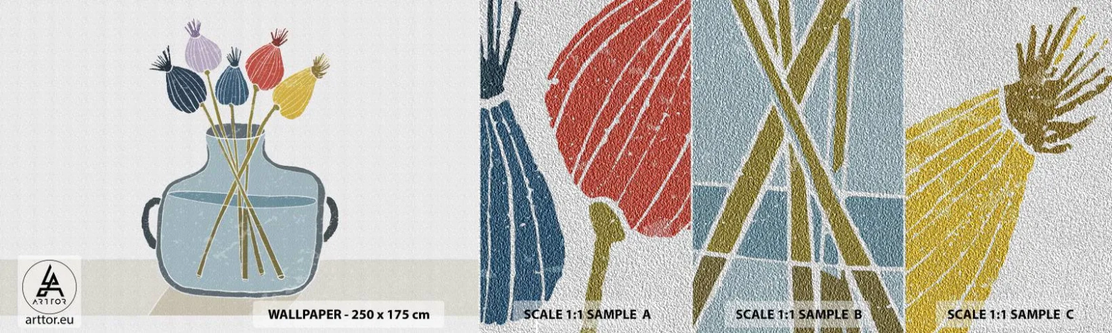 Vzor Fototapety Premium Sand - Makové květy - Květiny, Váza, Minimalismus - 100x30 cm