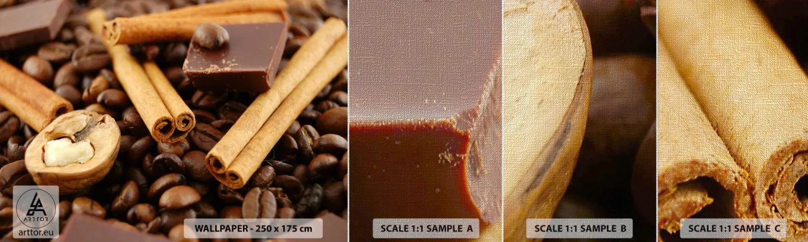Vzor Fototapety Premium Canvas - Koncert vůní - Gastronomie, Čokoláda, Kávová zrna - 100x30 cm
