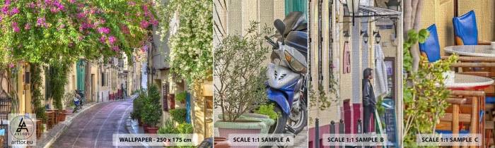 Vzor Fototapety Premium Canvas - Kvetoucí zákoutí - Architektura, Řecko, Město - 100x30 cm