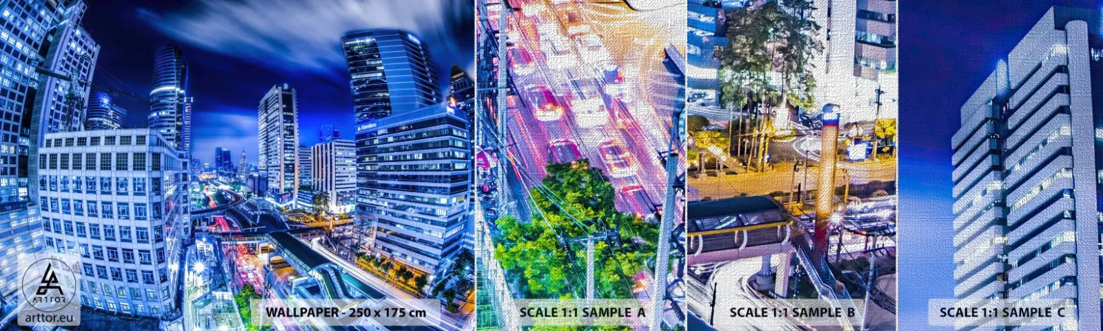 Vzor Fototapety Premium Canvas - Rytmy nočního města - Město, Bangkok, Architektura - 100x30 cm