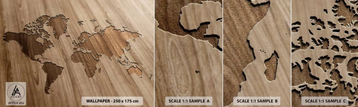 Vzor Fototapety Premium Canvas - Svět podaný na stole - Mapa světa, Dřevo, Kontinenty - 100x30 cm